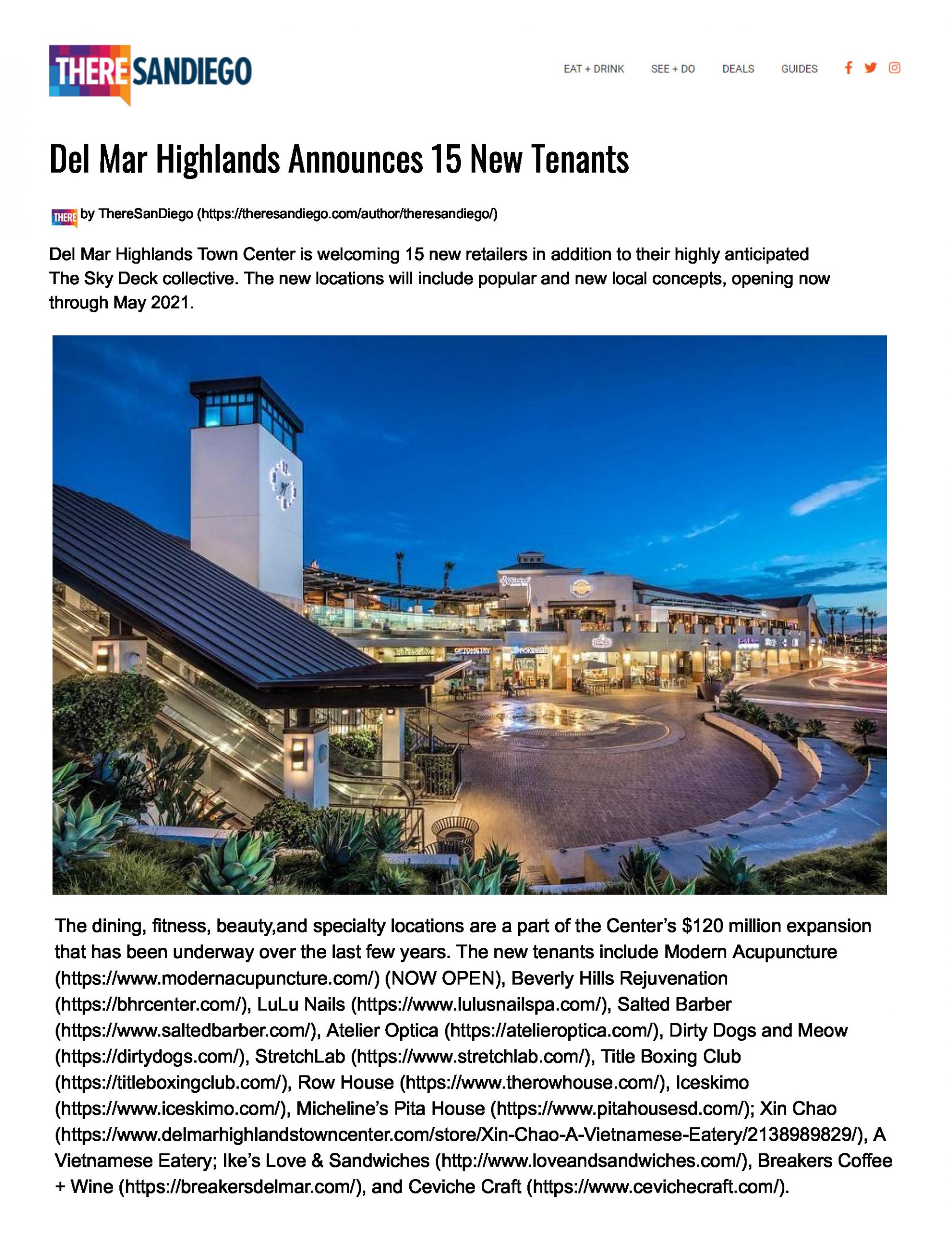 Del Mar Highlands Town Center Announces 15 New Tenants Page 1